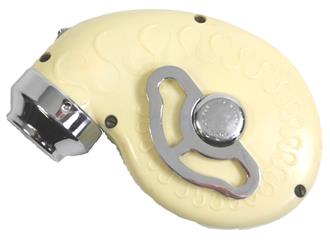 Un puissant ressort remonté par une clé permet aux pignons d'actionner la tête de coupe.