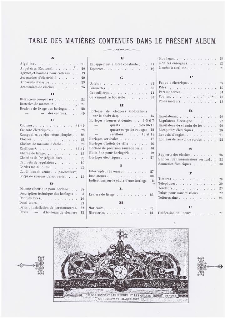 table des matières du catalogue Odobey