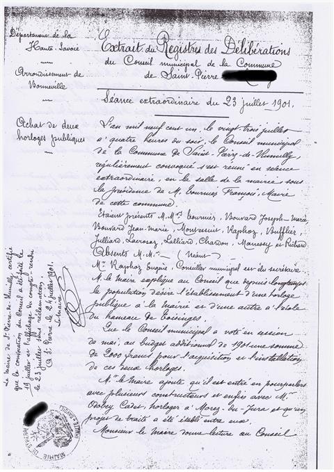 délibération du conseil municipal pour l'achat d'une horloge Odobey pour la mairie