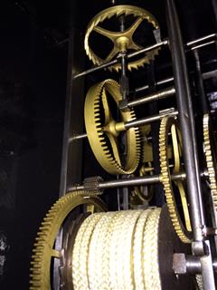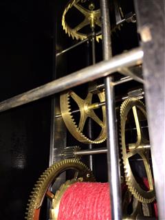 | - Type de mouvement : 2 aiguilles en laiton découpé (heures / minutes) - Taille du mouvement : 9 pouces (243mm) - Type de cadran : émaillé en cuvette - Style du fronton : Laiton ou bronze coulé - Type d'échappement : à verge (à roue de rencontre) - Architecture : 2 corps de rouages (piliers) - Sonnerie : sur cloche - Particularité sonnerie : répétition des heures & sonnerie des demies sur marteau séparé - Nombre de cloches : une cloche unique