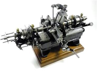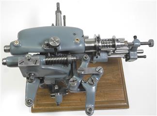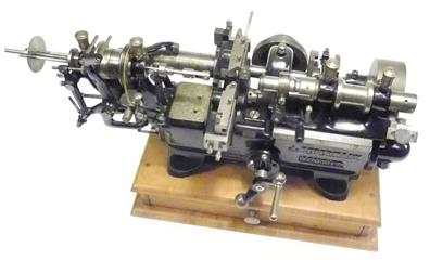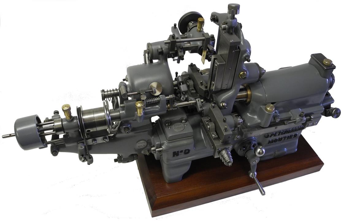 Fabriquée en Suisse avant 1920. Diamètre maxi de la pièce à usiner : 3 mm, longueur maxi :15 mm.