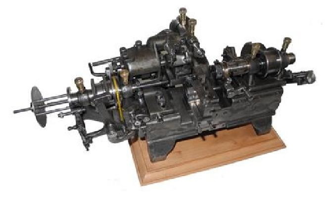 Cette machine était posée sur un établi et la force motrice transmise par un renvoi au plafond.