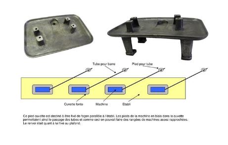 Cette machine comporte un bâti fonte avec moteur incorporé et boite à vitesses pour la poupée et la vitesse des cames.