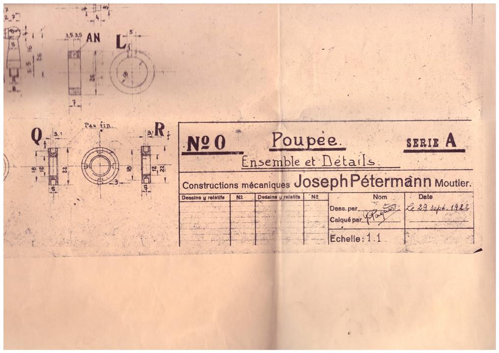 Plan de la poupée P0 au format A1 datant du 23 septembre 1922