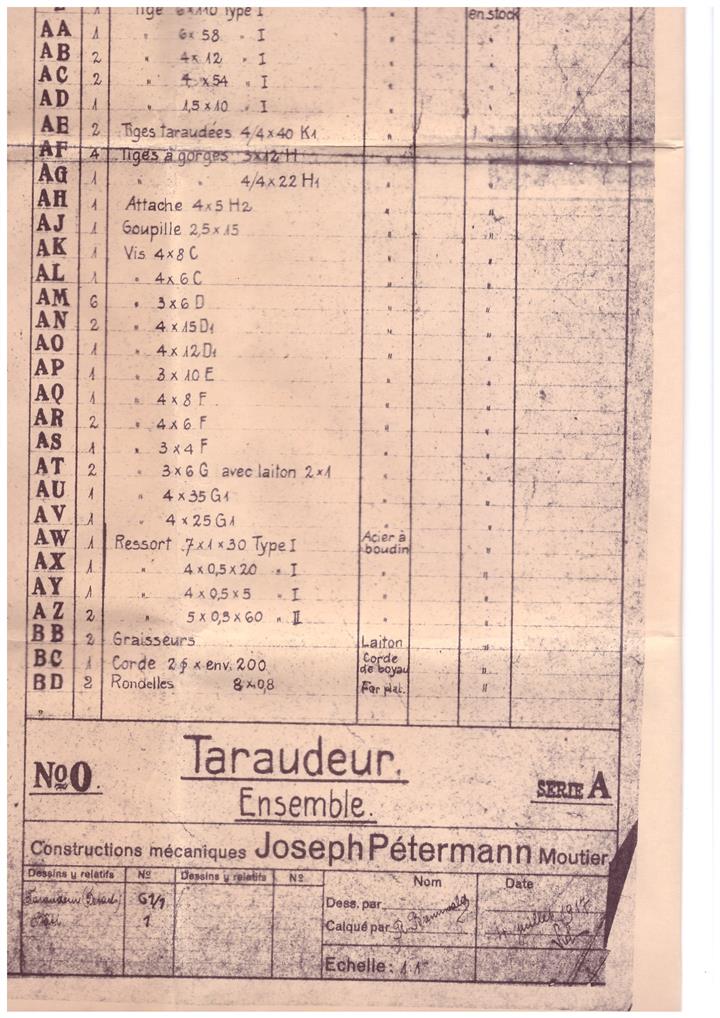 Plan du taraudeur P0 au format A1 datant du 25 juillet1917